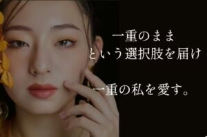 それなのに、周りの友人との空気感、SNS 上で一重は負け組と発信されていたり、芸能人が二重だったり、一重まぶたに対するネガティブな風潮に影響を受けてしまって二重整形という選択してしまったんだと思います。身近でそういうことを目の当たりにしたことで、一重は悪くないはずなのに、一重は隠さなければならないような存在になっていることにとても違和感があり、同時にくやしさも感じました。